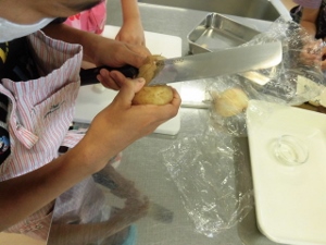 皮むきの手つきにひやひやしながらも、安全に気をつけて慎重におこなっていました。