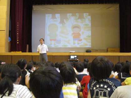 副校長先生に体育館で、道徳の授業を少しだけしていただきました。
