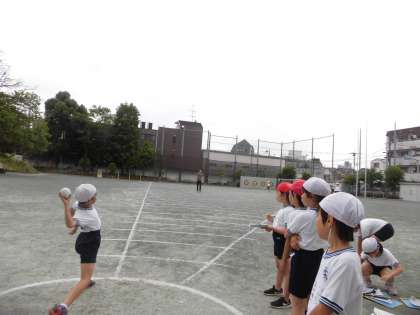 3年生は4年生と一緒に各種目の記録を計測していきました。