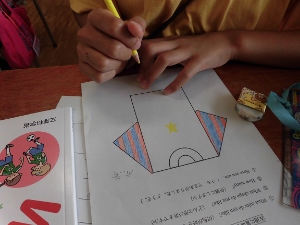 今回は、好きな色、形を伝え合い、Tシャツのデザインをしました。
