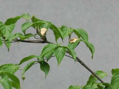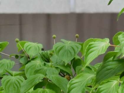 ところで、先週お話した桜ホールに行く階段横のヤマボウシの木ですが、先週と比べて変化がありました。花が少なくなってきています。見て確認してください。