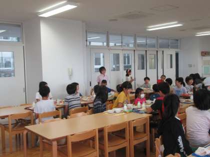 普段の教室よりも広くて、異学年の子たちと食べる新鮮さがあり、食欲も進みます。