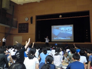 今日はJAF(日本自動車連盟)から講師をお招きし、交通ルールについて教えていただいたり、危険な運転のデモンストレーションを見たりしました。