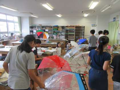 図工で取り組んでいる「桜小傘展」の完成が近づいてきました。