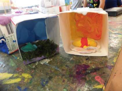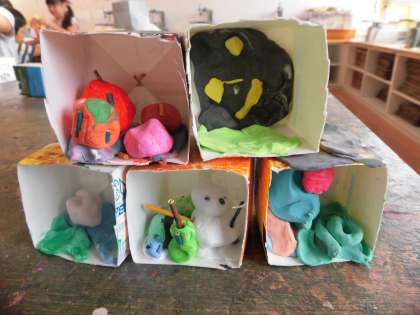 児童の中には、本物のような食べ物や、箱から飛び出しているような大作まであります。