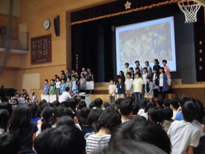 交流会では日吉小の児童の話に夢中になって聞き入っていました。