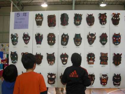子どもたちが作った図工と家庭科の作品が体育館に展示されていrます。