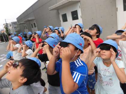 本日は久しぶりの太陽が見え、太陽を見ることができる、たいようめがねを用いて、太陽を観察しました。