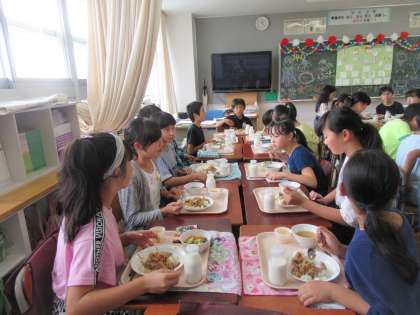 一緒に食べた給食では、会話が弾んであっという間に時間が過ぎてしまいました。