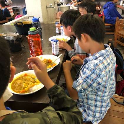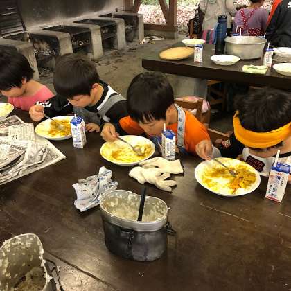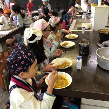 いただきます直後の様子です。皆、とても美味しそうです。失敗した班も無くて一安心です。