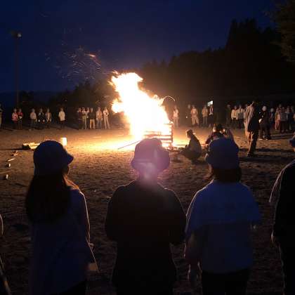 最後に炎が星の形になり、終焉の雰囲気になり名残が残る良い終わり方になりました。体調の悪い児童もいますが、夜食のバナナは食べたので今は安心しています。厄介なブヨが今年はいないので、明日も出ないことを望んでいます。班長会も終わりました。もうすぐ消灯となります。今日のホームページでの報告はこれで終わります。また、明日の朝から再開しますおやすみなさい。