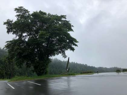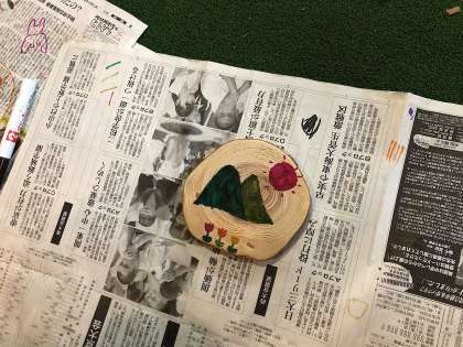 コースターが出来上がりました。移動教室らしい二人の作品を掲載します。雨があがってきました。宿舎で午前11時に昼食をとり、予定通りの目的地、雨乞山に向かいます。雨乞はせずに、雨があかり切ることを信じてスタートです。現地の天気予報では、雨は完全にあがり、景色も少しは見られるのではないかということです。