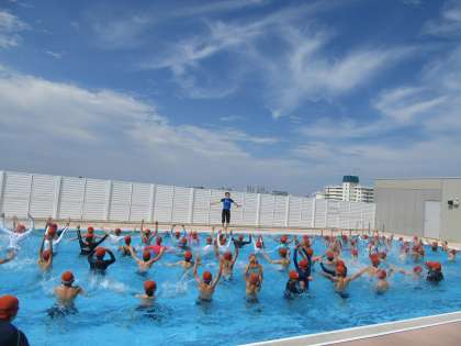 いよいよプールの中に入ると、子どもたちから大歓声が。