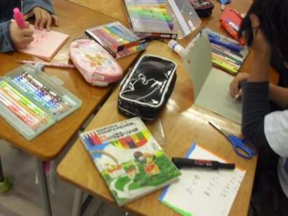 4年生は、総合の時間を利用して、ボロ市カードを作りました。