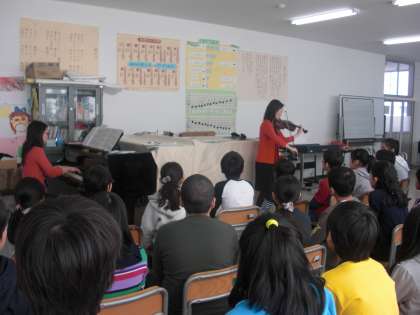 生で聴くバイオリンの音に子どもたちも感動!!(我々も感動です。)