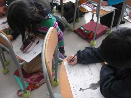 今日の音楽の学習は、特別講師をお呼びして、バイオリンについての学習をしました。