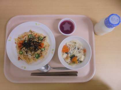 七夕給食であり、星形をした食材を取り入れたメニューや、七夕に食べる風習のあるそうめんを使った汁を出しました。子どもたちは喜んで食べてくれました。