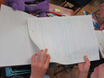 全体で確認した後に、日記やQ&A方式や新聞など、オリジナルノートにしてまとめました。