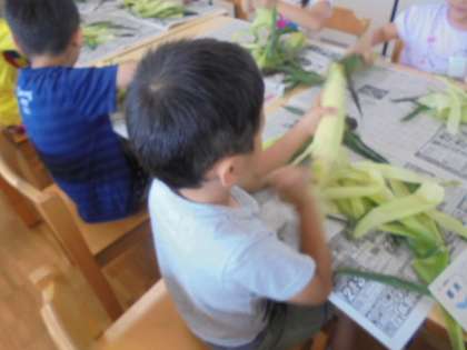 とうもろこしは1年生が1時間目に皮をむいてくれました。一生懸命楽しそうにとうもろこしをむいていました。1年生以外の学年もおいしそうに食べていました。