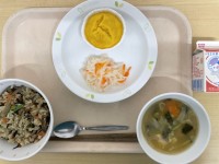 夏野菜のカレーライス 牛乳 野菜の中華風味 スイカ
