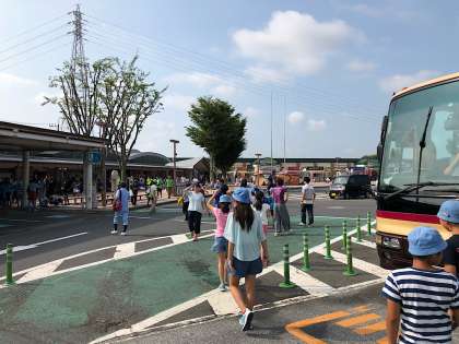 予定通り高坂サービスエリアで休憩しました。バス酔いの児童が数名おりますが、順調に関越自動車道を進んでいます。各バスでは、DVDを見ています。午前8時20分に出発しました。