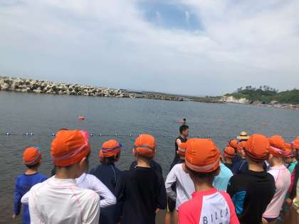 いよいよ海泳ぎ開始です。とても暑いですが、風もあり絶好のコンディションです。