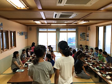 午前7時より朝食でした。朝食からしっかりと食べる児童が多く安心です。午前8時には、海泳ぎに出発です。