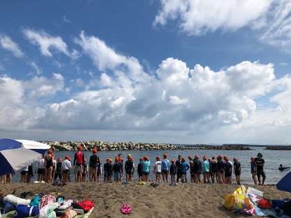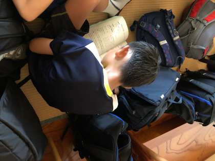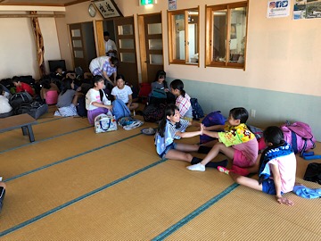 海泳ぎを終えました。今、宿に帰り小休憩をしているところです。もうすぐ日吉小学校に向けて出発です。