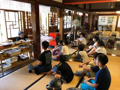 最後に金泉寺コースです。金泉寺には昭和19年から第4次まで桜小学校から疎開先として行ったそうです。金泉寺の小林洋子(旧姓伊藤)先生は第4次疎開として昭和20年4月に5〜6人の児童を引率して金泉寺にはじめてやってきたそうです。今では、金泉寺に嫁ぎ70年になるそうです。91歳の元桜小学校教諭小林洋子先生にお話ししていただきました。