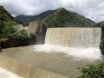 午前10時50分に足尾銅山銅親水公園に着きました。雨が止んだばかりで、少々地面は濡れていますが気持ちよく昼食が食べられそうです。ダムの水量は見たことがないほどものすごい水量でした。