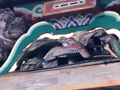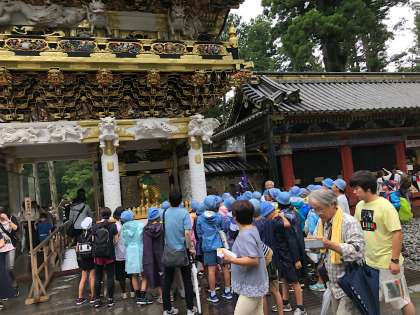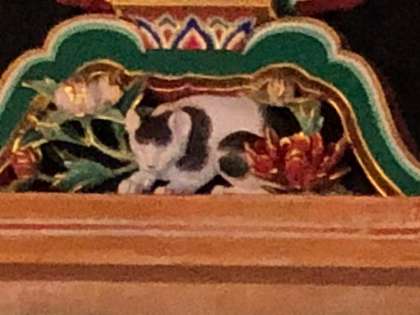平成の大修理を終えた陽明門をくぐりました。真っ白でとても綺麗でした。家康の墓への入口にある眠り猫の説明を聞きました。真下から見るとしかと、見張っているように見えるとも言われています。また、そのすぐ裏に雀の彫り物があります。猫と雀が一緒にいるほど平安の世を作ったということで飾られているという説明でした。