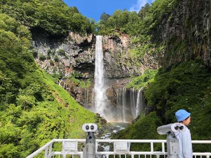 午前9時00分、華厳の滝エレベーターに乗り荘厳な雰囲気の中にある華厳の滝を見ました。滝を見ることを観瀑ということを知りました。