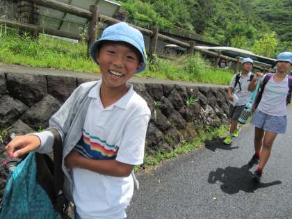 子どもたちは、手旗を頼りに歩きました。