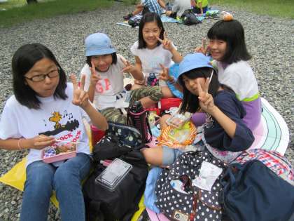 朝早くからお弁当を作ってくれたお家の人たちに感謝して、みんなでお弁当を食べました。