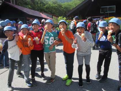 ハイキングでゴールした後、光徳牧場でアイスクリームを食べました。