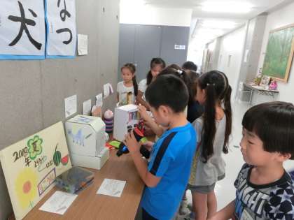 子どもたちも休み時間に友達の作品を興味津々で見ています!