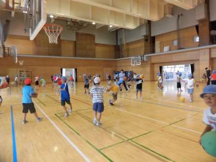 子どもたちは、久しぶりに会った友達と、校庭で遊べないこともあり、体育館で汗だくになるまで遊んでいました。