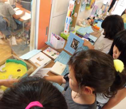 3年生の子どもたちは、1年生から6年生までの自由研究をまじまじと見ていました。