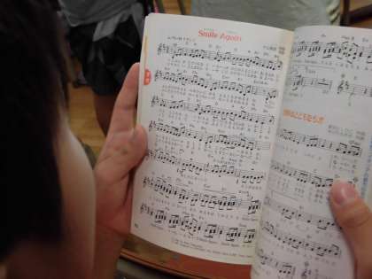 音楽朝会に向けて「SmileAgain」の学習では、大きな声でハキハキとした歌声で歌っていました。