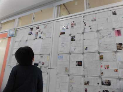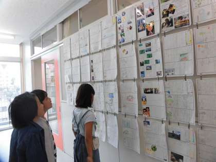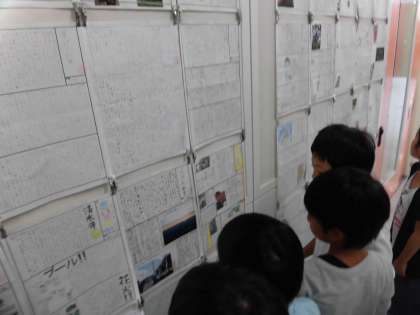 子どもたちは、友達が夏休みの間にしていたことに興味津々の様子で、各クラスの新聞に見入っていました。