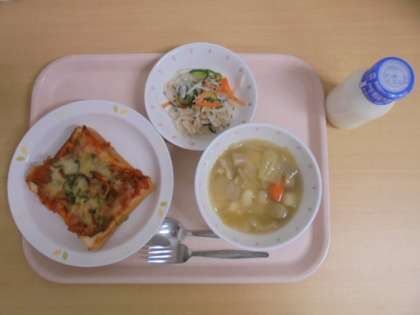 ピザトースト 牛乳 ポトフ 大根とツナのサラダ