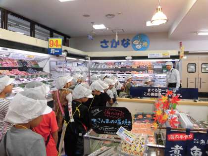 社会の授業で学習したスーパーマーケットのことを、店員さんのくわしい説明でさらに理解が深まったようです。