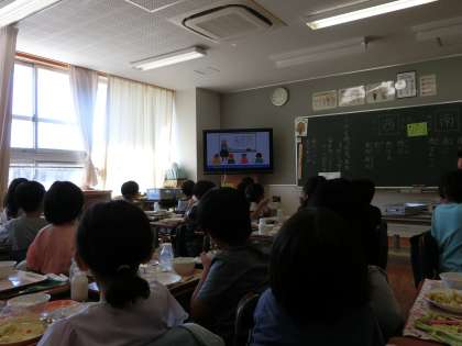 今日の給食のときに、ユニセフ募金の紹介DVDが流れました。