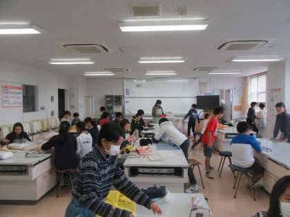 バックを作っている子たちは、もう少しかかりそうです。