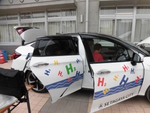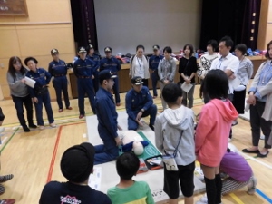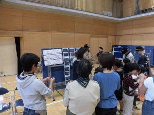 防災についてのいろいろなブースがあり、桜小の子どもたちも