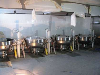 写真(3)----給食室にはすでに回転釜が入っています。
