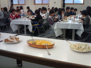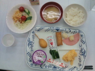 種類がたくさんあって、豪華な朝食です。外では雪が降り始めました。