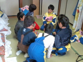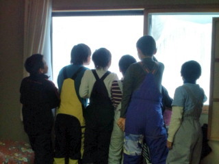 出発まで、トランプをしたり窓ガラスに絵を描いたりと、部屋ごとにくつろいでいます。