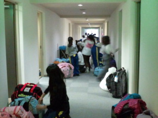 朝食前に、荷物を大ホールに運びます。最終日の朝は大忙しです。