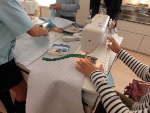 家庭科では140周年記念展覧会に向けてリュックを作っています。